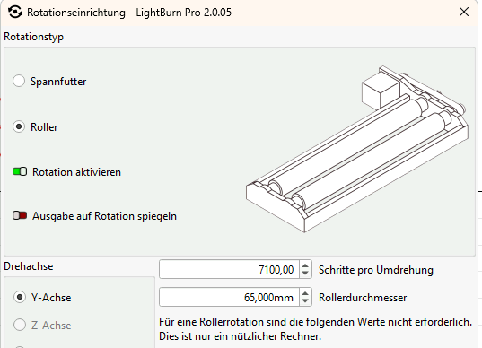 Es wird empfohlen, die Rotationseinheit in Lightburn zu konfigurieren.